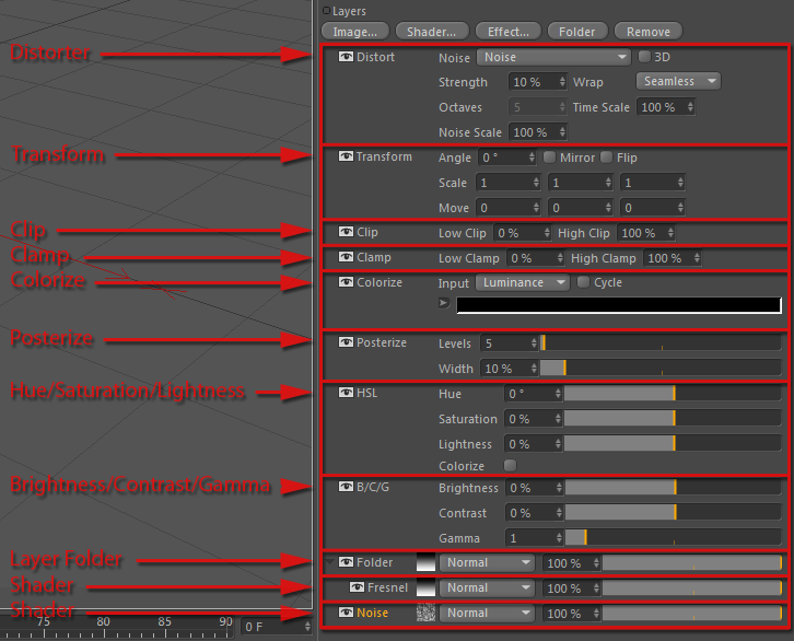 The Layer shader can contain several layers of different types (shaders, folders, effects).