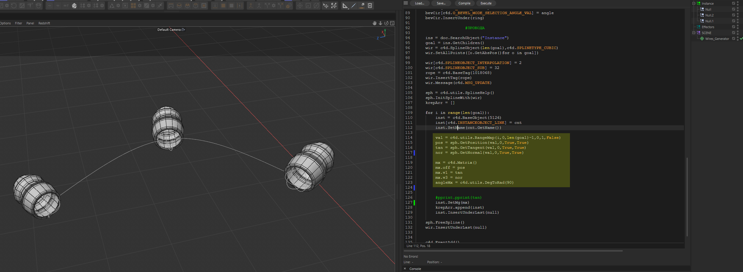 Hey, everybody. The code aligns my objects along the direction of the spline, but the problem is that the corner of the original meshes, do not look along the spline. I have tried c4d.utils.MatrixRotY() and other axes, but I don't get the rotation I want. I feel I can solve this problem somewhere in the green area(screenshot). Is there any solution to this problem? And to have the last object rotated 180 degrees relative to the others. The second screenshot is as it should be.